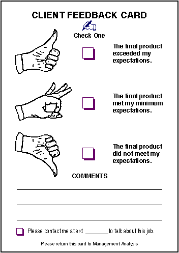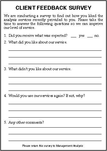 A Management Analysis section in a large public utility surveyed its customers to see how satisified they were with the services they were receiving. Less than 10% of the surveys were being returned. After the survey was redesigned over 98% were completed and returned.