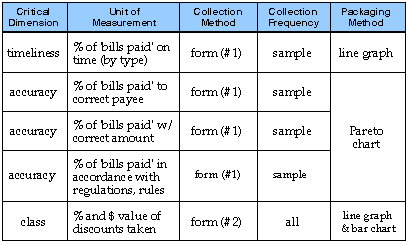 Before any measurement occurs you need to determine exactly what it is that you want to know or learn about process or organizational performance. James & Associates will conceptually design your ideal system. Then you can determine which measure(s) you want to take. The example below describes the specifications for the conceptual design of a measurement system for an Accounts Payable function.