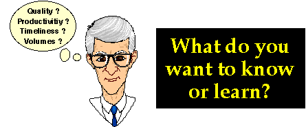 James & Associates offers custom performance measurement services. Quite often organizations have measurement systems in place that are either incomplete (e.g., only tracking volumes) or are measuring the wrong aspects of performance. Correct measurement gives you the ability to monitor performance and identify opportunities for improvement. But that doesn't mean that you need to 'count the eyelashes on a gnat' in doing so. Data collection and analysis should not be a lengthy, time-consuming activity. Our measurement systems are designed for simplicity yet focus on dimensions of the valued output or service that are important to measure.